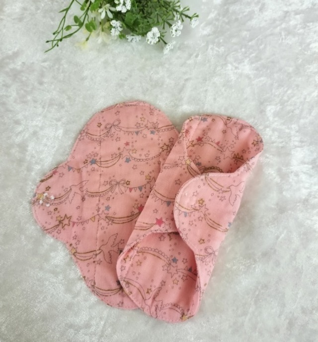 *柄の出方は異なります。 *とても柔らかい生地です。 パンティライナーを布に変えてみませんか。 体が喜び、心もほっとしますよ。 おりものシートは通気性が悪くてムレます。 デリケートな部分がかゆくなったり、 かぶれの原因になるんです。 友人が365日おりものシートを使っていたので、 プレゼントするのに作ったのが最初でした。 肌に優しく喜んでもらった事が販売のきっかけです。 僾花(ほのか)が作る布ライナーの一番と特徴はスナップボタンです。 布ナプキンの厚みがあれば気にならないスナップボタン。 でも、布ライナーは薄いので、ボタンのふくらみのポッチの気になりませんか。 その為、透明な手縫いのプラスチックボタンをお付けしています。 機械でつけるスナップボタンは簡単に付けれるけれど、 手縫いは時間がかかります。 手縫いのボタンは取れるんじゃない?とイベントで言われたこともあります。 大量生産されているシャツなどの商品はミシンのボタン付け。 なので、引っ張ると簡単に取れます。 でも、手縫いのボタン付けはしっかりボタンは包みながら付けるので、 外れる心配はありません、 痒みに敏感な方はライナーの周りを ロックミシンで処理しているものでもかぶれます。 そのため、まあるは袋縫いにしています。 布はムレません、カブレません。 中に1枚ネル生地を挟んでいるので 冷え防止にもご利用頂いています。 *おりものが気になるとき *生理が始まるころ、終わりがけ *冷え防止 両面同じ柄でお作りしています。 イベントで販売時に、裏を無地にしたものと 両方販売していたのですが、なぜか両面柄ばかり買っていく方が多く、 現在、両面同じ柄でお作りしています。 生地の在庫があるものは、裏を無地してお作りすることの可能です。 お気軽にお問合せくださいませ。 制作にお時間を2~3日頂く場合もございますので、 ご了承くださいませ。 ▶︎ 素材 肌面 綿100%(ダブルガーゼ) 吸収体 綿100%(フランネル) スナップボタン プラスチック100% ※防水シートははいっておりません。 ▶︎ サイズ 横 約16.5㎝X縦17㎝