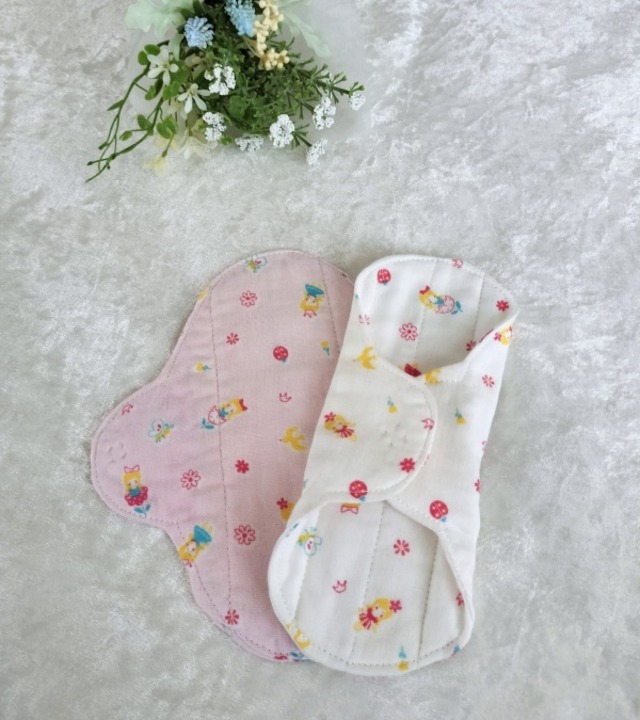 *柄の出方は異なります。 *親指姫、今日は何をして遊ぶのかな。 パンティライナーを布に変えてみませんか。 体が喜び、心もほっとしますよ。 おりものシートは通気性が悪くてムレます。 デリケートな部分がかゆくなったり、 かぶれの原因になるんです。 友人が365日おりものシートを使っていたので、 プレゼントするのに作ったのが最初でした。 肌に優しく喜んでもらった事が販売のきっかけです。 僾花(ほのか)が作る布ライナーの一番と特徴はスナップボタンです。 布ナプキンの厚みがあれば気にならないスナップボタン。 でも、布ライナーは薄いので、ボタンのふくらみのポッチの気になりませんか。 その為、透明な手縫いのプラスチックボタンをお付けしています。 機械でつけるスナップボタンは簡単に付けれるけれど、 手縫いは時間がかかります。 手縫いのボタンは取れるんじゃない?とイベントで言われたこともあります。 大量生産されているシャツなどの商品はミシンのボタン付け。 なので、引っ張ると簡単に取れます。 でも、手縫いのボタン付けはしっかりボタンは包みながら付けるので、 外れる心配はありません、 痒みに敏感な方はライナーの周りを ロックミシンで処理しているものでもかぶれます。 そのため、まあるは袋縫いにしています。 布はムレません、カブレません。 中に1枚ネル生地を挟んでいるので 冷え防止にもご利用頂いています。 *おりものが気になるとき *生理が始まるころ、終わりがけ *冷え防止 両面同じ柄でお作りしています。 イベントで販売時に、裏を無地にしたものと 両方販売していたのですが、なぜか両面柄ばかり買っていく方が多く、 現在、両面同じ柄でお作りしています。 生地の在庫があるものは、裏を無地してお作りすることの可能です。 お気軽にお問合せくださいませ。 制作にお時間を2~3日頂く場合もございますので、 ご了承くださいませ。 ▶︎ 素材 肌面 綿100%(ダブルガーゼ) 吸収体 綿100%(フランネル) スナップボタン プラスチック100% ※防水シートははいっておりません。 ▶︎ サイズ 横 約16.5㎝X縦17㎝
