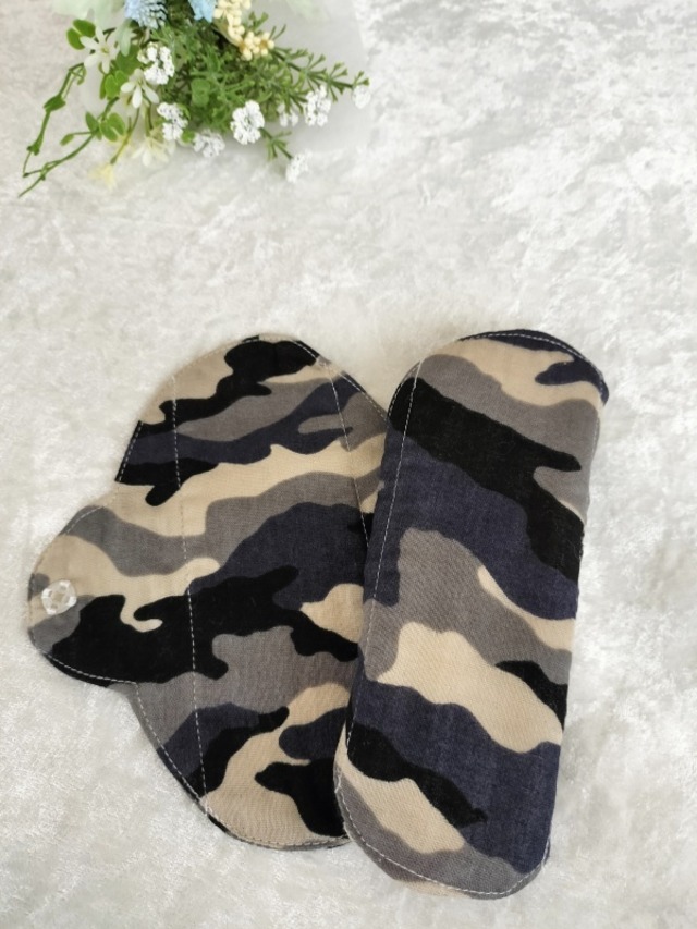 *柄の出方は異なります。 *迷彩柄は意外と女性にも人気があります。 パンティライナーを布に変えてみませんか。 体が喜び、心もほっとしますよ。 おりものシートは通気性が悪くてムレます。 デリケートな部分がかゆくなったり、 かぶれの原因になるんです。 友人が365日おりものシートを使っていたので、 プレゼントするのに作ったのが最初でした。 肌に優しく喜んでもらった事が販売のきっかけです。 僾花(ほのか)が作る布ライナーの一番と特徴はスナップボタンです。 布ナプキンの厚みがあれば気にならないスナップボタン。 でも、布ライナーは薄いので、ボタンのふくらみのポッチの気になりませんか。 その為、透明な手縫いのプラスチックボタンをお付けしています。 機械でつけるスナップボタンは簡単に付けれるけれど、 手縫いは時間がかかります。 手縫いのボタンは取れるんじゃない?とイベントで言われたこともあります。 大量生産されているシャツなどの商品はミシンのボタン付け。 なので、引っ張ると簡単に取れます。 でも、手縫いのボタン付けはしっかりボタンは包みながら付けるので、 外れる心配はありません、 痒みに敏感な方はライナーの周りを ロックミシンで処理しているものでもかぶれます。 そのため、まあるは袋縫いにしています。 布はムレません、カブレません。 中に1枚ネル生地を挟んでいるので 冷え防止にもご利用頂いています。 *おりものが気になるとき *生理が始まるころ、終わりがけ *冷え防止 両面同じ柄でお作りしています。 イベントで販売時に、裏を無地にしたものと 両方販売していたのですが、なぜか両面柄ばかり買っていく方が多く、 現在、両面同じ柄でお作りしています。 生地の在庫があるものは、裏を無地してお作りすることの可能です。 お気軽にお問合せくださいませ。 制作にお時間を2~3日頂く場合もございますので、 ご了承くださいませ。 ▶︎ 素材 肌面 綿100%(ダブルガーゼ) 吸収体 綿100%(フランネル) スナップボタン プラスチック100% ※防水シートははいっておりません。 ▶︎ サイズ 横 約16.5㎝X縦17㎝