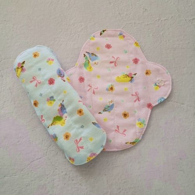 *柄の出方は異なります。 *可愛いインコは鳥好きさんに人気です。 パンティライナーを布に変えてみませんか。 体が喜び、心もほっとしますよ。 おりものシートは通気性が悪くてムレます。 デリケートな部分がかゆくなったり、 かぶれの原因になるんです。 友人が365日おりものシートを使っていたので、 プレゼントするのに作ったのが最初でした。 肌に優しく喜んでもらった事が販売のきっかけです。 僾花(ほのか)が作る布ライナーの一番と特徴はスナップボタンです。 布ナプキンの厚みがあれば気にならないスナップボタン。 でも、布ライナーは薄いので、ボタンのふくらみのポッチの気になりませんか。 その為、透明な手縫いのプラスチックボタンをお付けしています。 機械でつけるスナップボタンは簡単に付けれるけれど、 手縫いは時間がかかります。 手縫いのボタンは取れるんじゃない?とイベントで言われたこともあります。 大量生産されているシャツなどの商品はミシンのボタン付け。 なので、引っ張ると簡単に取れます。 でも、手縫いのボタン付けはしっかりボタンは包みながら付けるので、 外れる心配はありません、 痒みに敏感な方はライナーの周りを ロックミシンで処理しているものでもかぶれます。 そのため、まあるは袋縫いにしています。 布はムレません、カブレません。 中に1枚ネル生地を挟んでいるので 冷え防止にもご利用頂いています。 *おりものが気になるとき *生理が始まるころ、終わりがけ *冷え防止 両面同じ柄でお作りしています。 イベントで販売時に、裏を無地にしたものと 両方販売していたのですが、なぜか両面柄ばかり買っていく方が多く、 現在、両面同じ柄でお作りしています。 生地の在庫があるものは、裏を無地してお作りすることの可能です。 お気軽にお問合せくださいませ。 制作にお時間を2~3日頂く場合もございますので、 ご了承くださいませ。 ▶︎ 素材 肌面 綿100%(ダブルガーゼ) 吸収体 綿100%(フランネル) スナップボタン プラスチック100% ※防水シートははいっておりません。 ▶︎ サイズ 横 約16.5㎝X縦17㎝