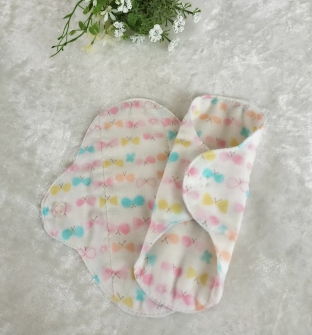 *柄の出方は異なります。 *蝶々が整列して出番を待っています。 パンティライナーを布に変えてみませんか。 体が喜び、心もほっとしますよ。 おりものシートは通気性が悪くてムレます。 デリケートな部分がかゆくなったり、 かぶれの原因になるんです。 友人が365日おりものシートを使っていたので、 プレゼントするのに作ったのが最初でした。 肌に優しく喜んでもらった事が販売のきっかけです。 僾花(ほのか)が作る布ライナーの一番と特徴はスナップボタンです。 布ナプキンの厚みがあれば気にならないスナップボタン。 でも、布ライナーは薄いので、ボタンのふくらみのポッチの気になりませんか。 その為、透明な手縫いのプラスチックボタンをお付けしています。 機械でつけるスナップボタンは簡単に付けれるけれど、 手縫いは時間がかかります。 手縫いのボタンは取れるんじゃない?とイベントで言われたこともあります。 大量生産されているシャツなどの商品はミシンのボタン付け。 なので、引っ張ると簡単に取れます。 でも、手縫いのボタン付けはしっかりボタンは包みながら付けるので、 外れる心配はありません、 痒みに敏感な方はライナーの周りを ロックミシンで処理しているものでもかぶれます。 そのため、まあるは袋縫いにしています。 布はムレません、カブレません。 中に1枚ネル生地を挟んでいるので 冷え防止にもご利用頂いています。 *おりものが気になるとき *生理が始まるころ、終わりがけ *冷え防止 両面同じ柄でお作りしています。 イベントで販売時に、裏を無地にしたものと 両方販売していたのですが、なぜか両面柄ばかり買っていく方が多く、 現在、両面同じ柄でお作りしています。 生地の在庫があるものは、裏を無地してお作りすることの可能です。 お気軽にお問合せくださいませ。 制作にお時間を2~3日頂く場合もございますので、 ご了承くださいませ。 ▶︎ 素材 肌面 綿100%(ダブルガーゼ) 吸収体 綿100%(フランネル) スナップボタン プラスチック100% ※防水シートははいっておりません。 ▶︎ サイズ 横 約16.5㎝X縦17㎝