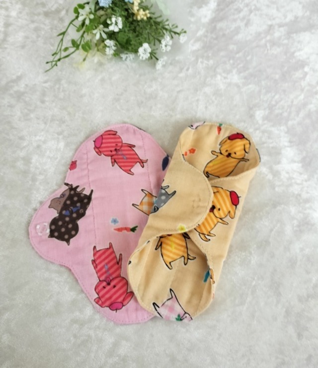 *柄の出方は異なります。 *ちょっとレトロな柄の動物達。お花に囲まれて幸せそう。 パンティライナーを布に変えてみませんか。 体が喜び、心もほっとしますよ。 おりものシートは通気性が悪くてムレます。 デリケートな部分がかゆくなったり、 かぶれの原因になるんです。 友人が365日おりものシートを使っていたので、 プレゼントするのに作ったのが最初でした。 肌に優しく喜んでもらった事が販売のきっかけです。 僾花(ほのか)が作る布ライナーの一番と特徴はスナップボタンです。 布ナプキンの厚みがあれば気にならないスナップボタン。 でも、布ライナーは薄いので、ボタンのふくらみのポッチの気になりませんか。 その為、透明な手縫いのプラスチックボタンをお付けしています。 機械でつけるスナップボタンは簡単に付けれるけれど、 手縫いは時間がかかります。 手縫いのボタンは取れるんじゃない?とイベントで言われたこともあります。 大量生産されているシャツなどの商品はミシンのボタン付け。 なので、引っ張ると簡単に取れます。 でも、手縫いのボタン付けはしっかりボタンは包みながら付けるので、 外れる心配はありません、 痒みに敏感な方はライナーの周りを ロックミシンで処理しているものでもかぶれます。 そのため、まあるは袋縫いにしています。 布はムレません、カブレません。 中に1枚ネル生地を挟んでいるので 冷え防止にもご利用頂いています。 *おりものが気になるとき *生理が始まるころ、終わりがけ *冷え防止 両面同じ柄でお作りしています。 イベントで販売時に、裏を無地にしたものと 両方販売していたのですが、なぜか両面柄ばかり買っていく方が多く、 現在、両面同じ柄でお作りしています。 生地の在庫があるものは、裏を無地してお作りすることの可能です。 お気軽にお問合せくださいませ。 制作にお時間を2~3日頂く場合もございますので、 ご了承くださいませ。 ▶︎ 素材 肌面 綿100%(ダブルガーゼ) 吸収体 綿100%(フランネル) スナップボタン プラスチック100% ※防水シートははいっておりません。 ▶︎ サイズ 横 約16.5㎝X縦17㎝