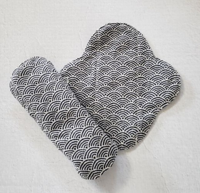 *柄の出方は異なります。 *シックな和柄の青海波。青海波は、未来永劫へと続く幸せへの願いが込められた柄です。 パンティライナーを布に変えてみませんか。 体が喜び、心もほっとしますよ。 おりものシートは通気性が悪くてムレます。 デリケートな部分がかゆくなったり、 かぶれの原因になるんです。 友人が365日おりものシートを使っていたので、 プレゼントするのに作ったのが最初でした。 肌に優しく喜んでもらった事が販売のきっかけです。 僾花(ほのか)が作る布ライナーの一番と特徴はスナップボタンです。 布ナプキンの厚みがあれば気にならないスナップボタン。 でも、布ライナーは薄いので、ボタンのふくらみのポッチの気になりませんか。 その為、透明な手縫いのプラスチックボタンをお付けしています。 機械でつけるスナップボタンは簡単に付けれるけれど、 手縫いは時間がかかります。 手縫いのボタンは取れるんじゃない?とイベントで言われたこともあります。 大量生産されているシャツなどの商品はミシンのボタン付け。 なので、引っ張ると簡単に取れます。 でも、手縫いのボタン付けはしっかりボタンは包みながら付けるので、 外れる心配はありません、 痒みに敏感な方はライナーの周りを ロックミシンで処理しているものでもかぶれます。 そのため、まあるは袋縫いにしています。 布はムレません、カブレません。 中に1枚ネル生地を挟んでいるので 冷え防止にもご利用頂いています。 *おりものが気になるとき *生理が始まるころ、終わりがけ *冷え防止 両面同じ柄でお作りしています。 イベントで販売時に、裏を無地にしたものと 両方販売していたのですが、なぜか両面柄ばかり買っていく方が多く、 現在、両面同じ柄でお作りしています。 生地の在庫があるものは、裏を無地してお作りすることの可能です。 お気軽にお問合せくださいませ。 制作にお時間を2~3日頂く場合もございますので、 ご了承くださいませ。 ▶︎ 素材 肌面 綿100%(ダブルガーゼ) 吸収体 綿100%(フランネル) スナップボタン プラスチック100% ※防水シートははいっておりません。 ▶︎ サイズ 横 約16.5㎝X縦17㎝