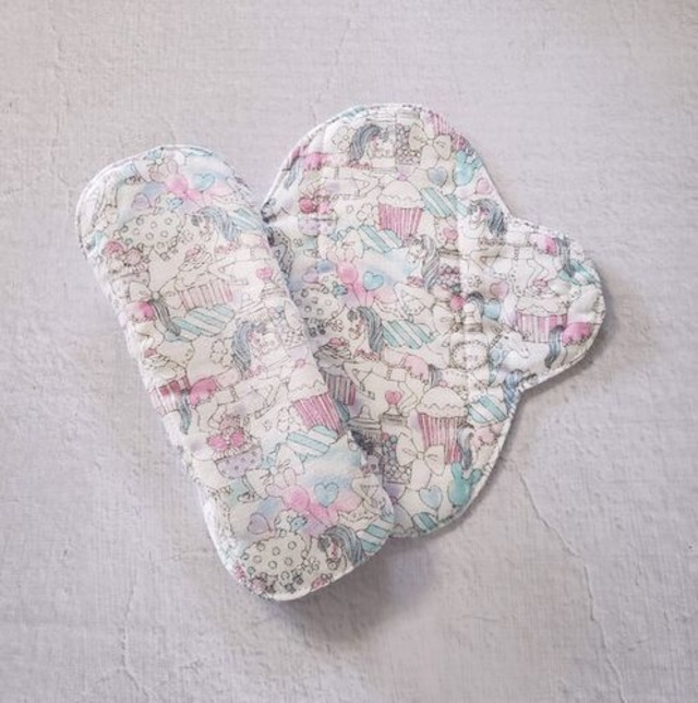 *柄の出方は異なります。 *美味しそうなお菓子の中いる白馬。パーティの準備に大忙し。 パンティライナーを布に変えてみませんか。 体が喜び、心もほっとしますよ。 おりものシートは通気性が悪くてムレます。 デリケートな部分がかゆくなったり、 かぶれの原因になるんです。 友人が365日おりものシートを使っていたので、 プレゼントするのに作ったのが最初でした。 肌に優しく喜んでもらった事が販売のきっかけです。 僾花(ほのか)が作る布ライナーの一番と特徴はスナップボタンです。 布ナプキンの厚みがあれば気にならないスナップボタン。 でも、布ライナーは薄いので、ボタンのふくらみのポッチの気になりませんか。 その為、透明な手縫いのプラスチックボタンをお付けしています。 機械でつけるスナップボタンは簡単に付けれるけれど、 手縫いは時間がかかります。 手縫いのボタンは取れるんじゃない?とイベントで言われたこともあります。 大量生産されているシャツなどの商品はミシンのボタン付け。 なので、引っ張ると簡単に取れます。 でも、手縫いのボタン付けはしっかりボタンは包みながら付けるので、 外れる心配はありません、 痒みに敏感な方はライナーの周りを ロックミシンで処理しているものでもかぶれます。 そのため、まあるは袋縫いにしています。 布はムレません、カブレません。 中に1枚ネル生地を挟んでいるので 冷え防止にもご利用頂いています。 *おりものが気になるとき *生理が始まるころ、終わりがけ *冷え防止 両面同じ柄でお作りしています。 イベントで販売時に、裏を無地にしたものと 両方販売していたのですが、なぜか両面柄ばかり買っていく方が多く、 現在、両面同じ柄でお作りしています。 生地の在庫があるものは、裏を無地してお作りすることの可能です。 お気軽にお問合せくださいませ。 制作にお時間を2~3日頂く場合もございますので、 ご了承くださいませ。 ▶︎ 素材 肌面 綿100%(ダブルガーゼ) 吸収体 綿100%(フランネル) スナップボタン プラスチック100% ※防水シートははいっておりません。 ▶︎ サイズ 横 約16.5㎝X縦17㎝